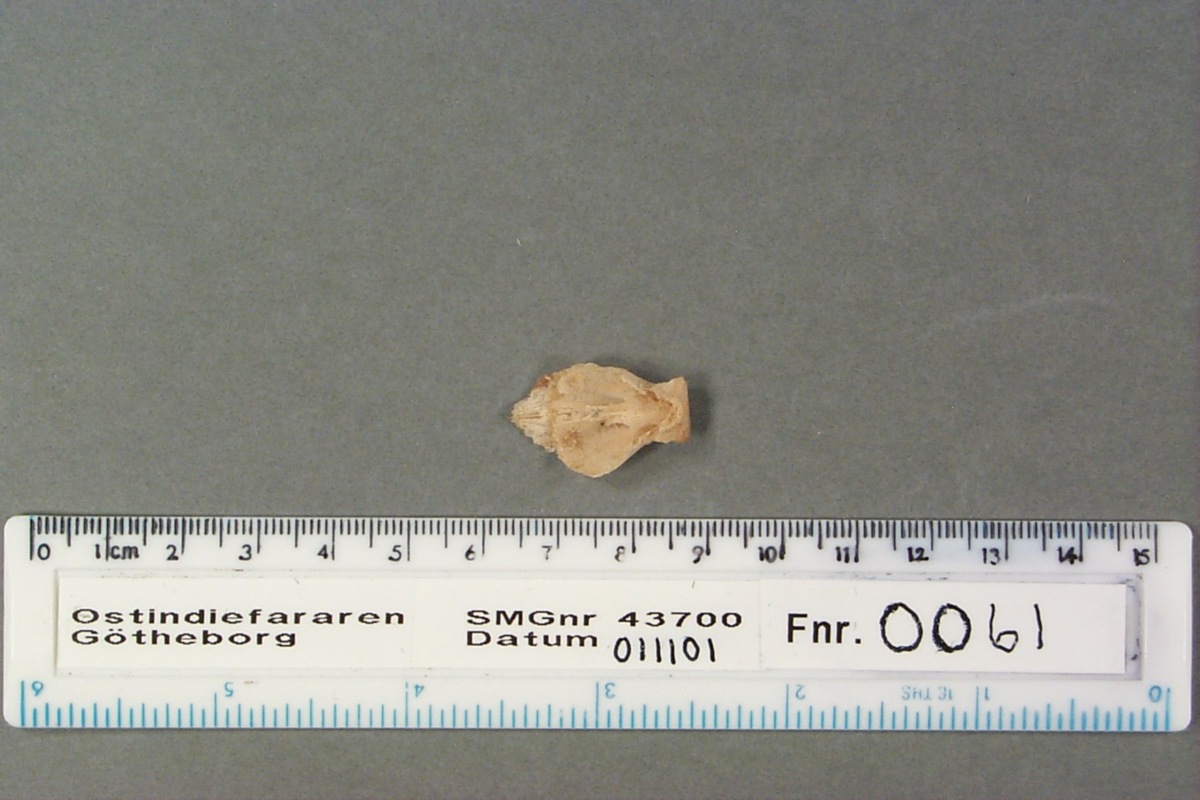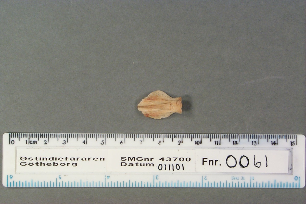 Föremålet är från vraket av ostindiefararen Götheborg, som gjorde tre resor till Kina 1739-45. Vid hemkomsten från den sista resan 12 september 1745 förliste fartyget vid grundet Hunnebådan strax utanför Nya Elfsborgs fästning. Vid flera tillfällen har material tagits upp från vraket. Föremålet kommer från de marinarkeologiska utgrävningarna på platsen 1986-1992.