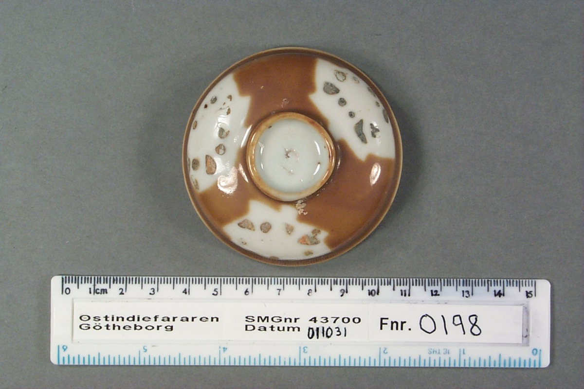 Föremålet är från vraket av ostindiefararen Götheborg, som gjorde tre resor till Kina 1739-45. Vid hemkomsten från den sista resan 12 september 1745 förliste fartyget vid grundet Hunnebådan strax utanför Nya Elfsborgs fästning. Vid flera tillfällen har material tagits upp från vraket. Föremålet kommer från de marinarkeologiska utgrävningarna på platsen 1986-1992.
