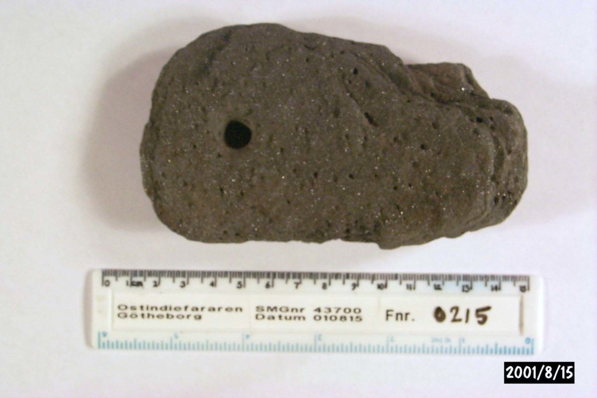 Föremålet är från vraket av ostindiefararen Götheborg, som gjorde tre resor till Kina 1739-45. Vid hemkomsten från den sista resan 12 september 1745 förliste fartyget vid grundet Hunnebådan strax utanför Nya Elfsborgs fästning. Vid flera tillfällen har material tagits upp från vraket. Föremålet kommer från de marinarkeologiska utgrävningarna på platsen 1986-1992.