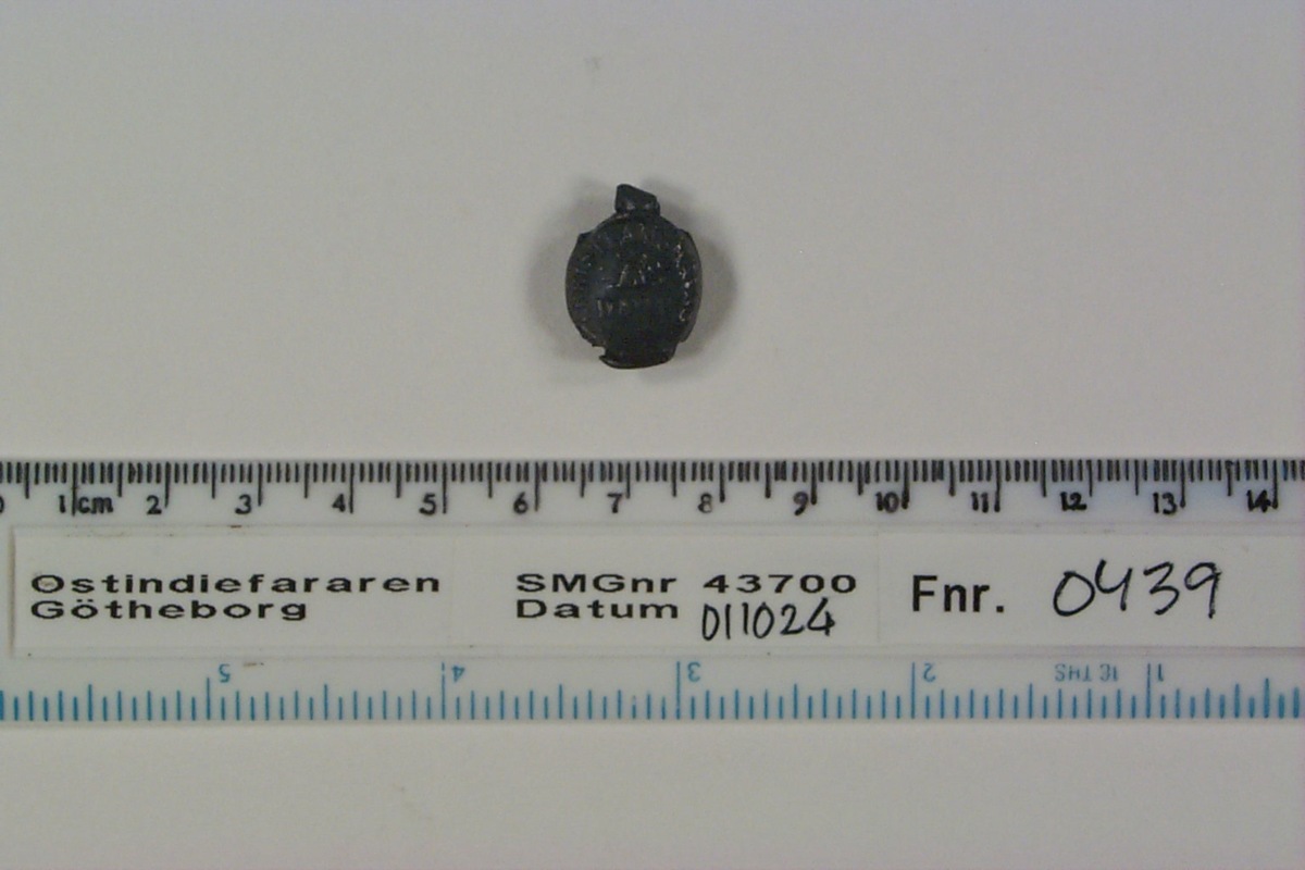 Föremålet är från vraket av ostindiefararen Götheborg, som gjorde tre resor till Kina 1739-45. Vid hemkomsten från den sista resan 12 september 1745 förliste fartyget vid grundet Hunnebådan strax utanför Nya Elfsborgs fästning. Vid flera tillfällen har material tagits upp från vraket. Föremålet kommer från de marinarkeologiska utgrävningarna på platsen 1986-1992.
