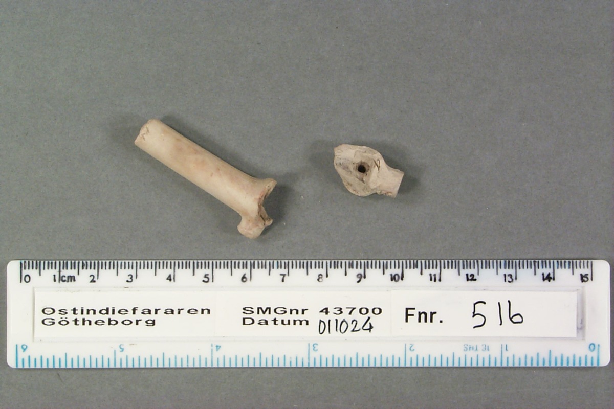 Föremålet är från vraket av ostindiefararen Götheborg, som gjorde tre resor till Kina 1739-45. Vid hemkomsten från den sista resan 12 september 1745 förliste fartyget vid grundet Hunnebådan strax utanför Nya Elfsborgs fästning. Vid flera tillfällen har material tagits upp från vraket. Föremålet kommer från de marinarkeologiska utgrävningarna på platsen 1986-1992.