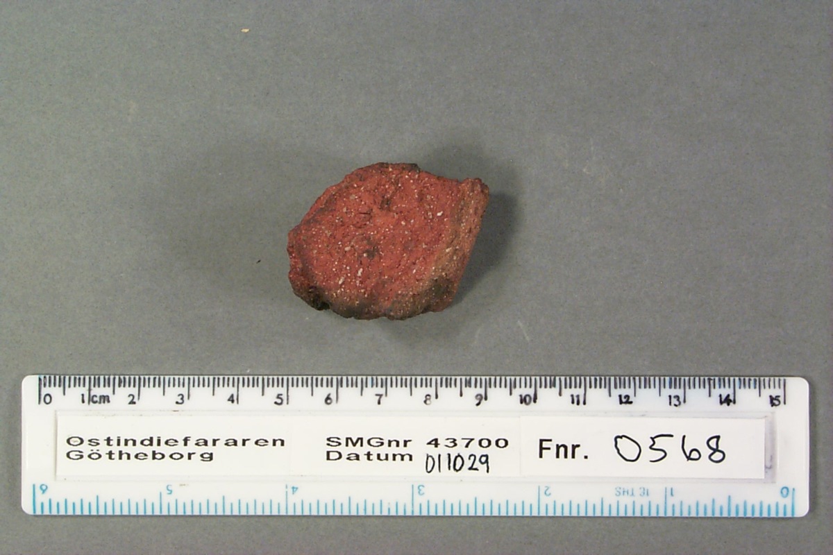 Föremålet är från vraket av ostindiefararen Götheborg, som gjorde tre resor till Kina 1739-45. Vid hemkomsten från den sista resan 12 september 1745 förliste fartyget vid grundet Hunnebådan strax utanför Nya Elfsborgs fästning. Vid flera tillfällen har material tagits upp från vraket. Föremålet kommer från de marinarkeologiska utgrävningarna på platsen 1986-1992.