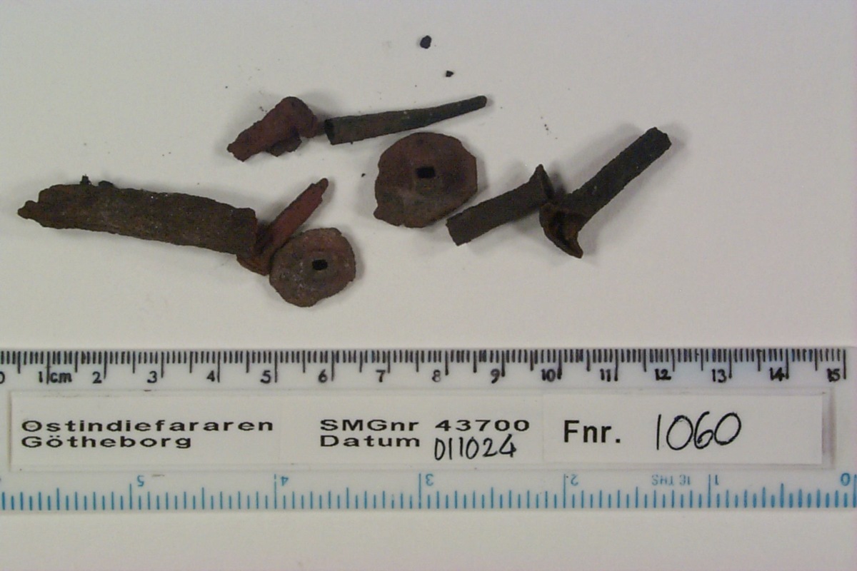 Föremålet är från vraket av ostindiefararen Götheborg, som gjorde tre resor till Kina 1739-45. Vid hemkomsten från den sista resan 12 september 1745 förliste fartyget vid grundet Hunnebådan strax utanför Nya Elfsborgs fästning. Vid flera tillfällen har material tagits upp från vraket. Föremålet kommer från de marinarkeologiska utgrävningarna på platsen 1986-1992.