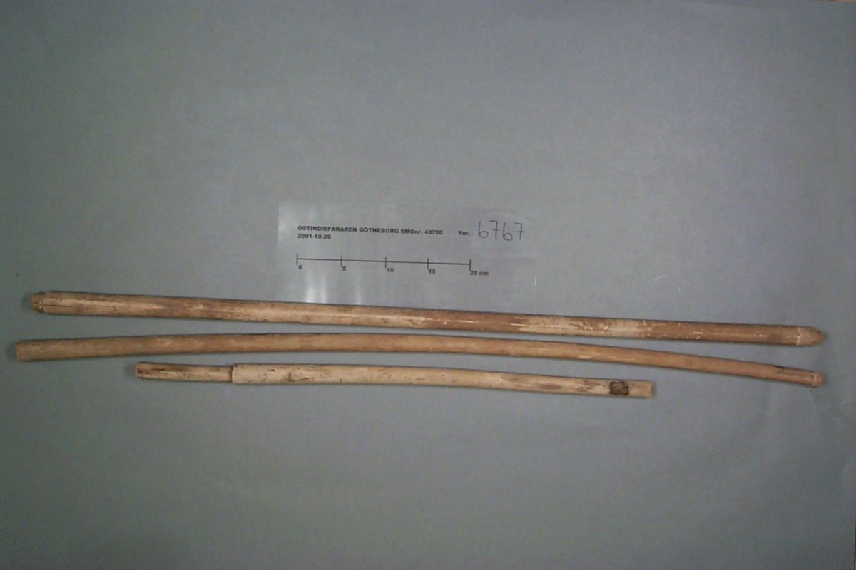 Föremålet är från vraket av ostindiefararen Götheborg, som gjorde tre resor till Kina 1739-45. Vid hemkomsten från den sista resan 12 september 1745 förliste fartyget vid grundet Hunnebådan strax utanför Nya Elfsborgs fästning. Vid flera tillfällen har material tagits upp från vraket. Föremålet kommer från de marinarkeologiska utgrävningarna på platsen 1986-1992.