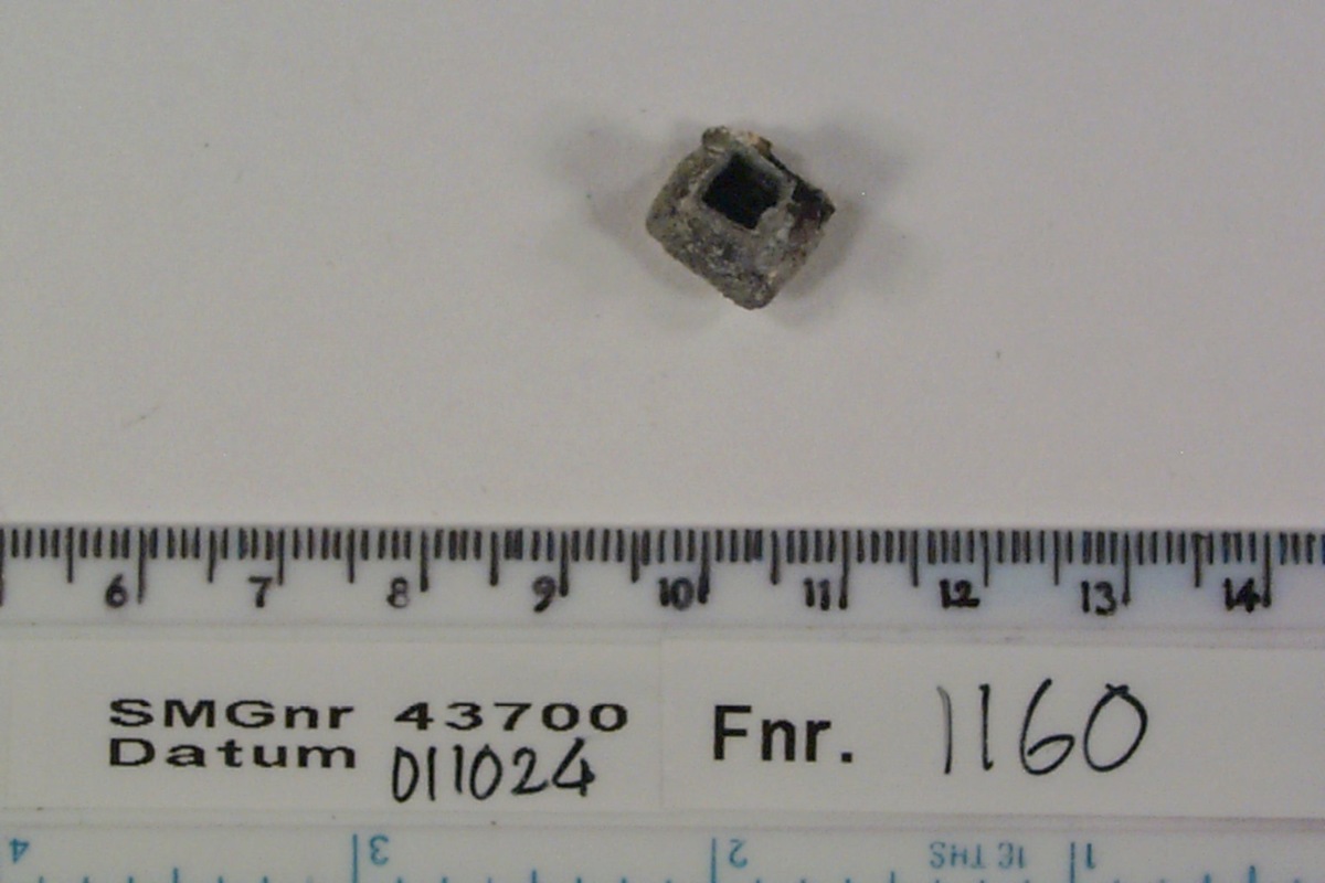Fyrkantig spikskalle, ihåligt del av skaft, har varit järnspik med cu-överdrag?