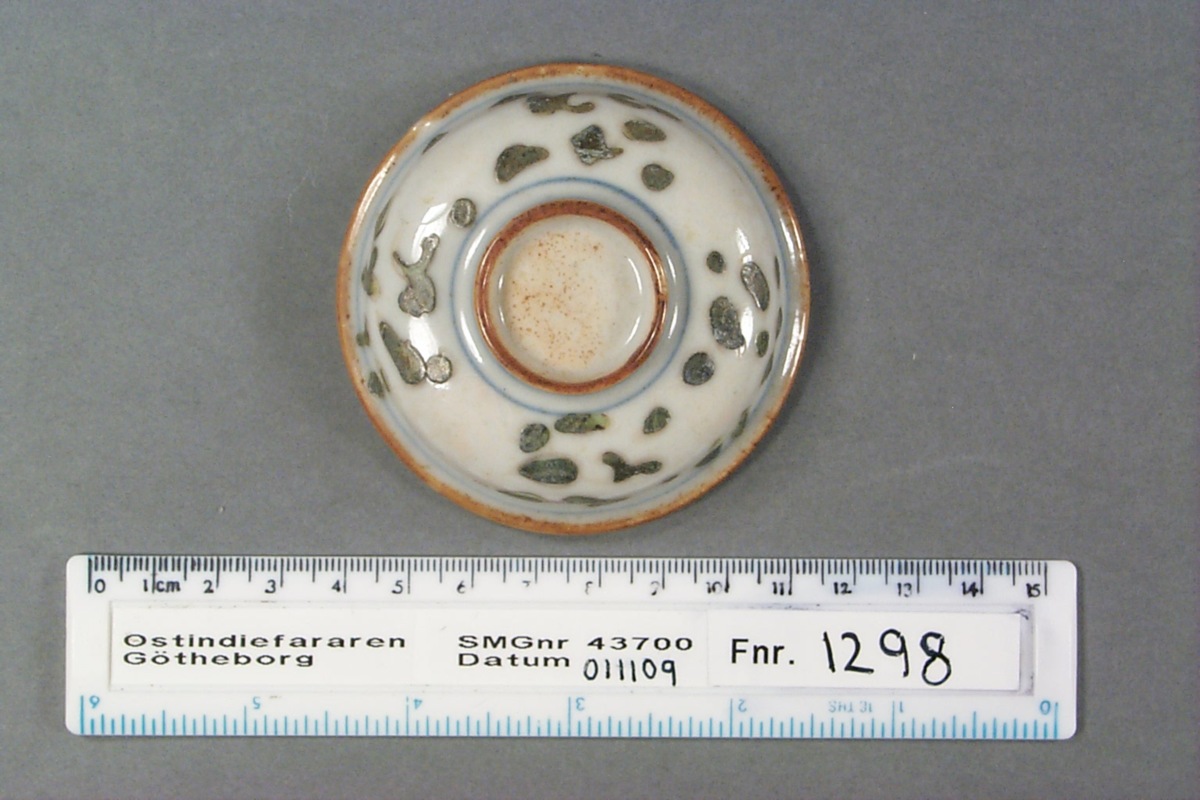 Föremålet är från vraket av ostindiefararen Götheborg, som gjorde tre resor till Kina 1739-45. Vid hemkomsten från den sista resan 12 september 1745 förliste fartyget vid grundet Hunnebådan strax utanför Nya Elfsborgs fästning. Vid flera tillfällen har material tagits upp från vraket. Föremålet kommer från de marinarkeologiska utgrävningarna på platsen 1986-1992.