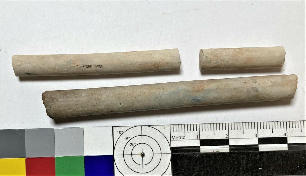 Avbrutet i båda ändar, ingen dekor. Tre delar, hör ej samman.
