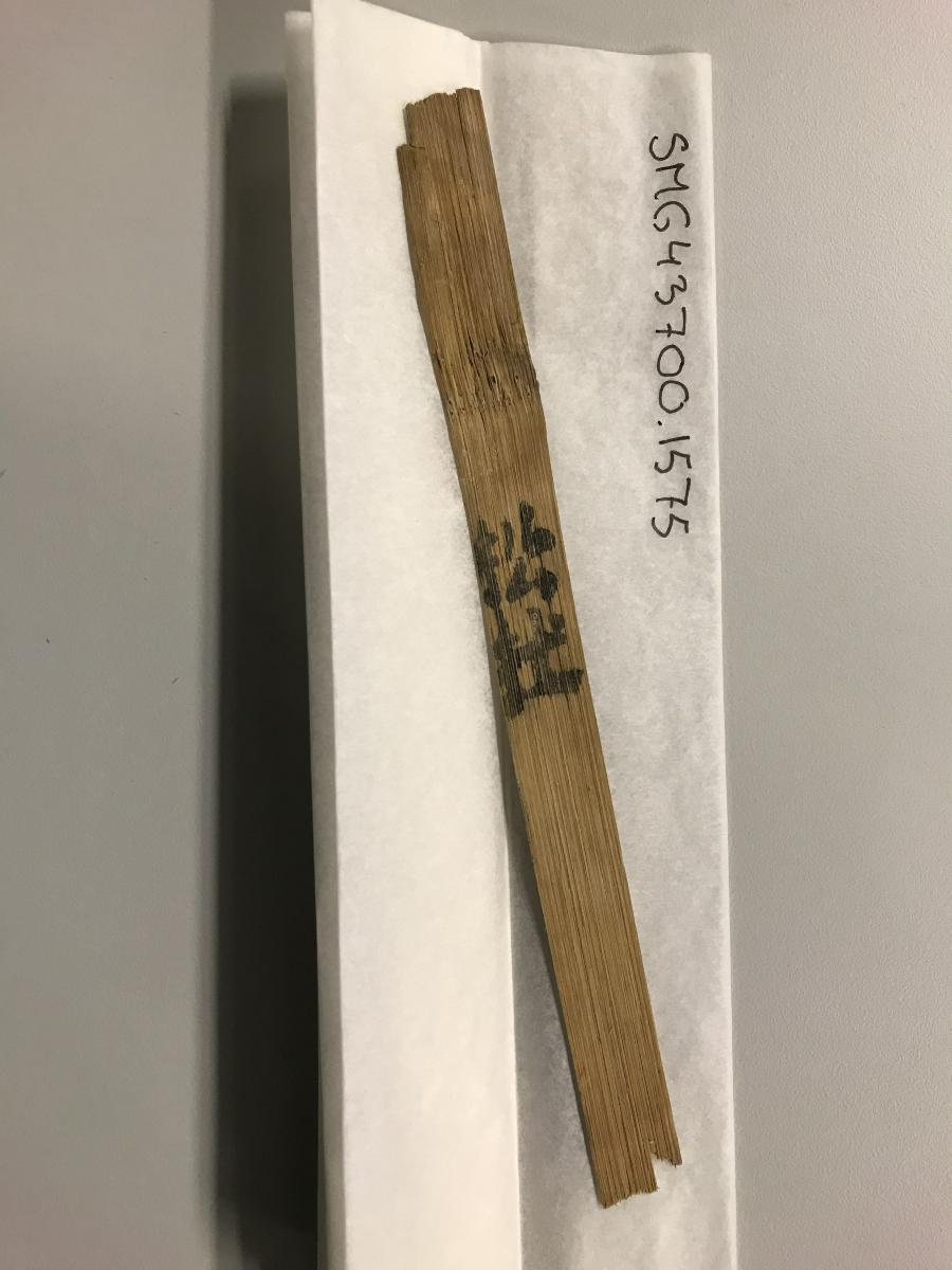 Föremålet är från vraket av ostindiefararen Götheborg, som gjorde tre resor till Kina 1739-45. Vid hemkomsten från den sista resan 12 september 1745 förliste fartyget vid grundet Hunnebådan strax utanför Nya Elfsborgs fästning. Vid flera tillfällen har material tagits upp från vraket. Föremålet kommer från de marinarkeologiska utgrävningarna på platsen 1986-1992.