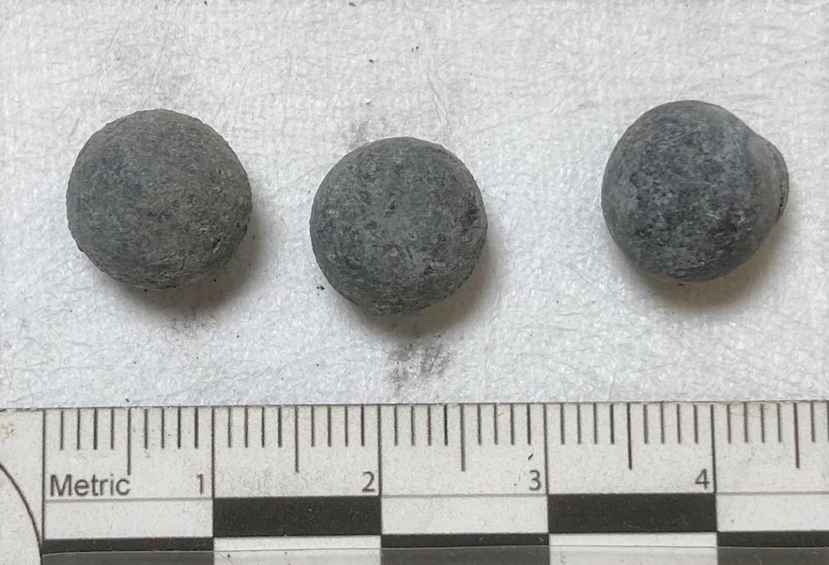 Pistolkulor, tre st. Lätt korroderade