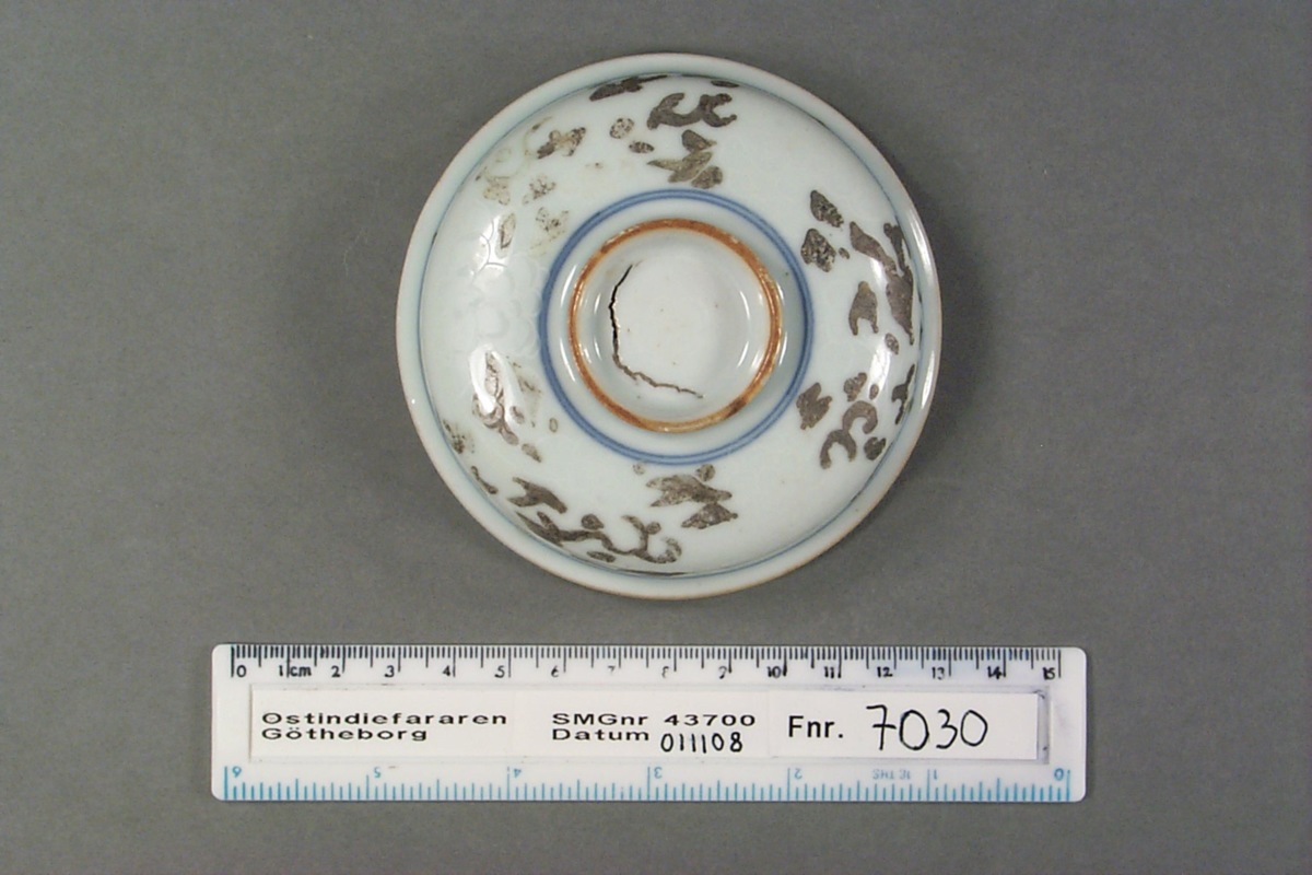 Föremålet är från vraket av ostindiefararen Götheborg, som gjorde tre resor till Kina 1739-45. Vid hemkomsten från den sista resan 12 september 1745 förliste fartyget vid grundet Hunnebådan strax utanför Nya Elfsborgs fästning. Vid flera tillfällen har material tagits upp från vraket. Föremålet kommer från de marinarkeologiska utgrävningarna på platsen 1986-1992.