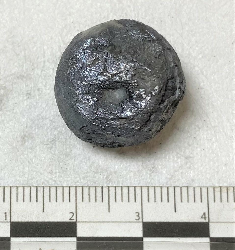 Kula, skrovlig, med gjutskägg, tillplattad. Blankpolerad.