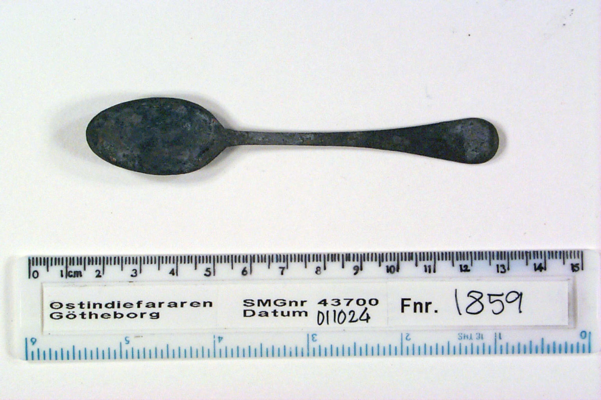 Föremålet kommer från utrustningen ombord vraket av ostindiefararen Götheborg, som gjorde tre resor till Kina 1739-45. Vid hemkomsten från den sista resan 12 september 1745 förliste fartyget vid grundet Hunnebådan strax utanför Nya Elfsborgs fästning. Vid flera tillfällen har material tagits upp från vraket. Föremålet kommer från de marinarkeologiska utgrävningarna på platsen 1986-1992.