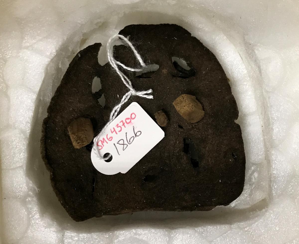 Föremålet är från vraket av ostindiefararen Götheborg, som gjorde tre resor till Kina 1739-45. Vid hemkomsten från den sista resan 12 september 1745 förliste fartyget vid grundet Hunnebådan strax utanför Nya Elfsborgs fästning. Vid flera tillfällen har material tagits upp från vraket. Föremålet kommer från de marinarkeologiska utgrävningarna på platsen 1986-1992.
