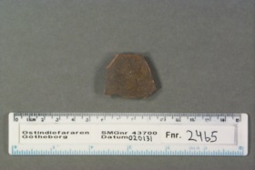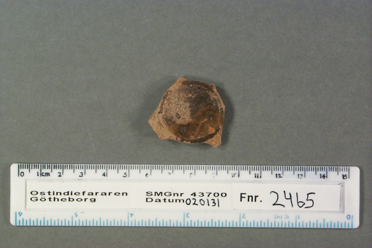 Föremålet är från vraket av ostindiefararen Götheborg, som gjorde tre resor till Kina 1739-45. Vid hemkomsten från den sista resan 12 september 1745 förliste fartyget vid grundet Hunnebådan strax utanför Nya Elfsborgs fästning. Vid flera tillfällen har material tagits upp från vraket. Föremålet kommer från de marinarkeologiska utgrävningarna på platsen 1986-1992.