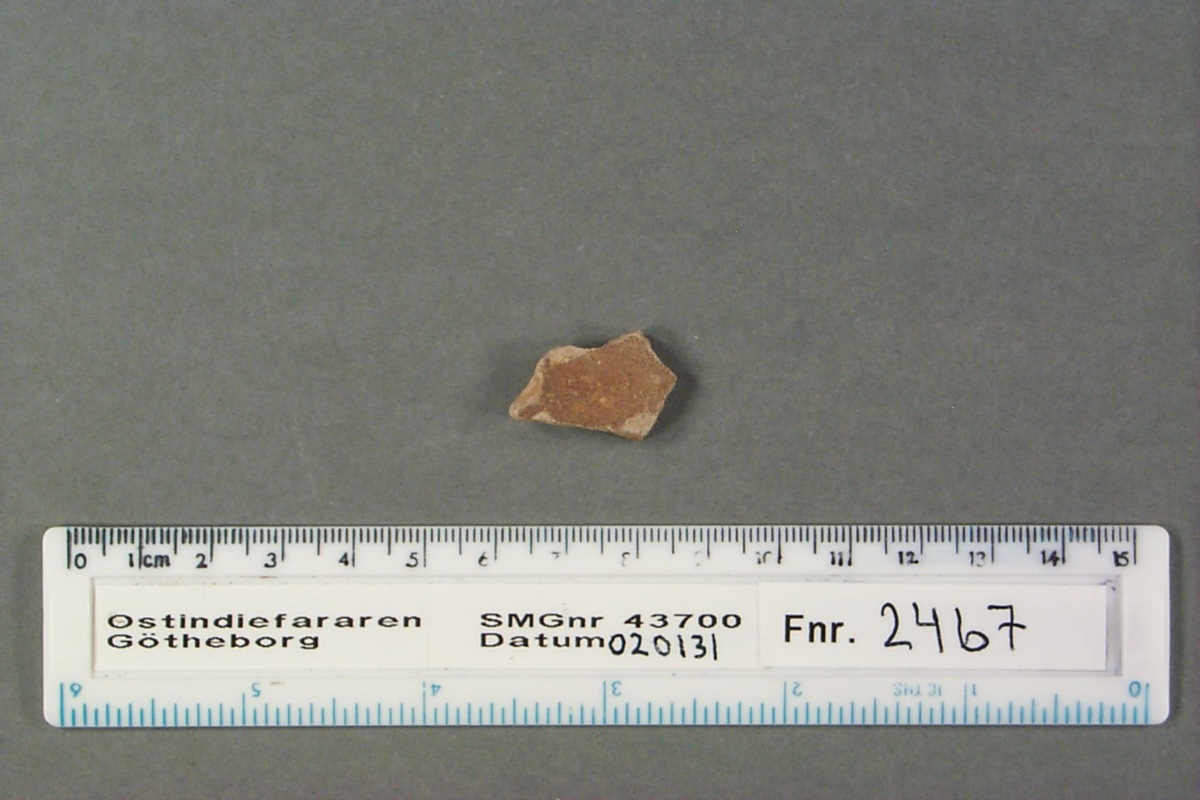 Föremålet är från vraket av ostindiefararen Götheborg, som gjorde tre resor till Kina 1739-45. Vid hemkomsten från den sista resan 12 september 1745 förliste fartyget vid grundet Hunnebådan strax utanför Nya Elfsborgs fästning. Vid flera tillfällen har material tagits upp från vraket. Föremålet kommer från de marinarkeologiska utgrävningarna på platsen 1986-1992.