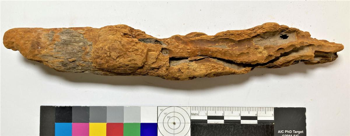 Föremålet är från vraket av ostindiefararen Götheborg, som gjorde tre resor till Kina 1739-45. Vid hemkomsten från den sista resan 12 september 1745 förliste fartyget vid grundet Hunnebådan strax utanför Nya Elfsborgs fästning. Vid flera tillfällen har material tagits upp från vraket. Föremålet kommer från de marinarkeologiska utgrävningarna på platsen 1986-1992.