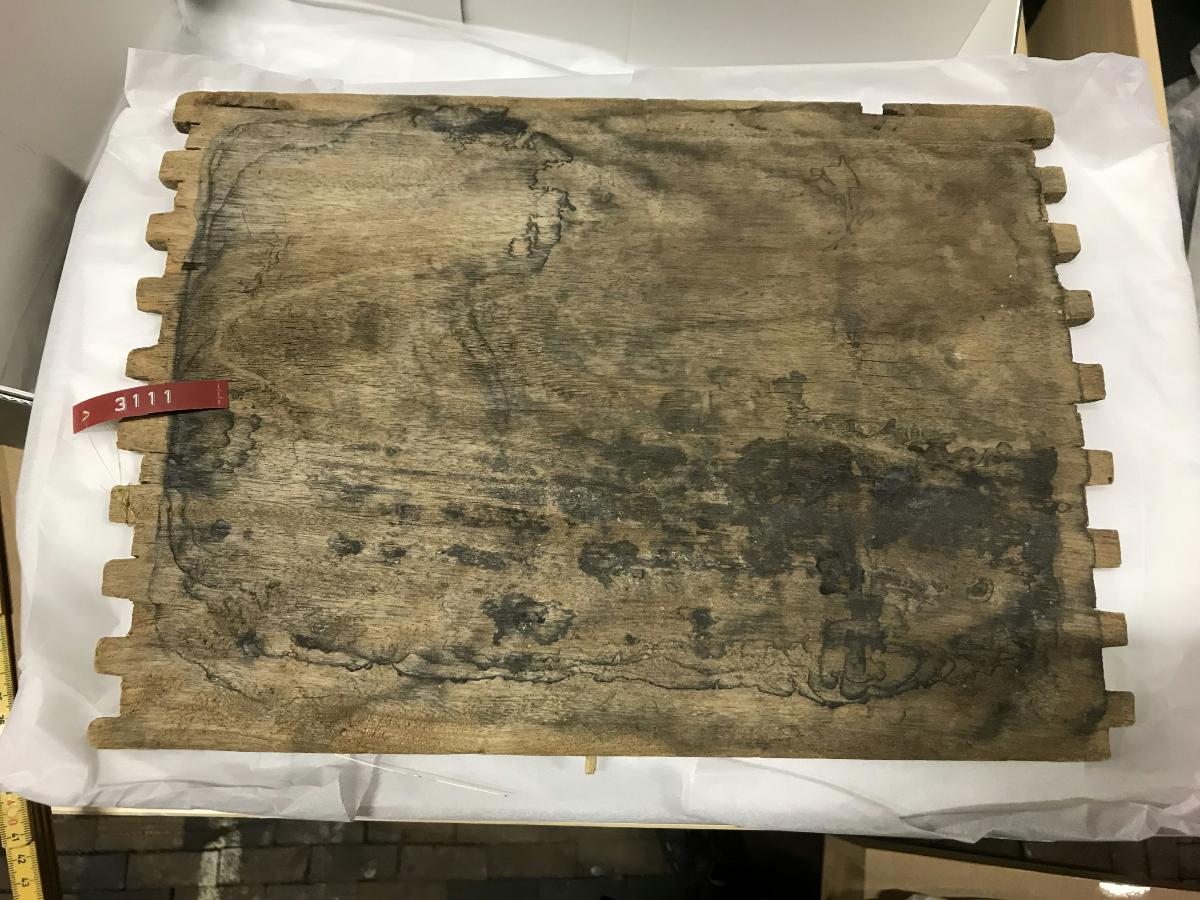 Föremålet är från vraket av ostindiefararen Götheborg, som gjorde tre resor till Kina 1739-45. Vid hemkomsten från den sista resan 12 september 1745 förliste fartyget vid grundet Hunnebådan strax utanför Nya Elfsborgs fästning. Vid flera tillfällen har material tagits upp från vraket. Föremålet kommer från de marinarkeologiska utgrävningarna på platsen 1986-1992.