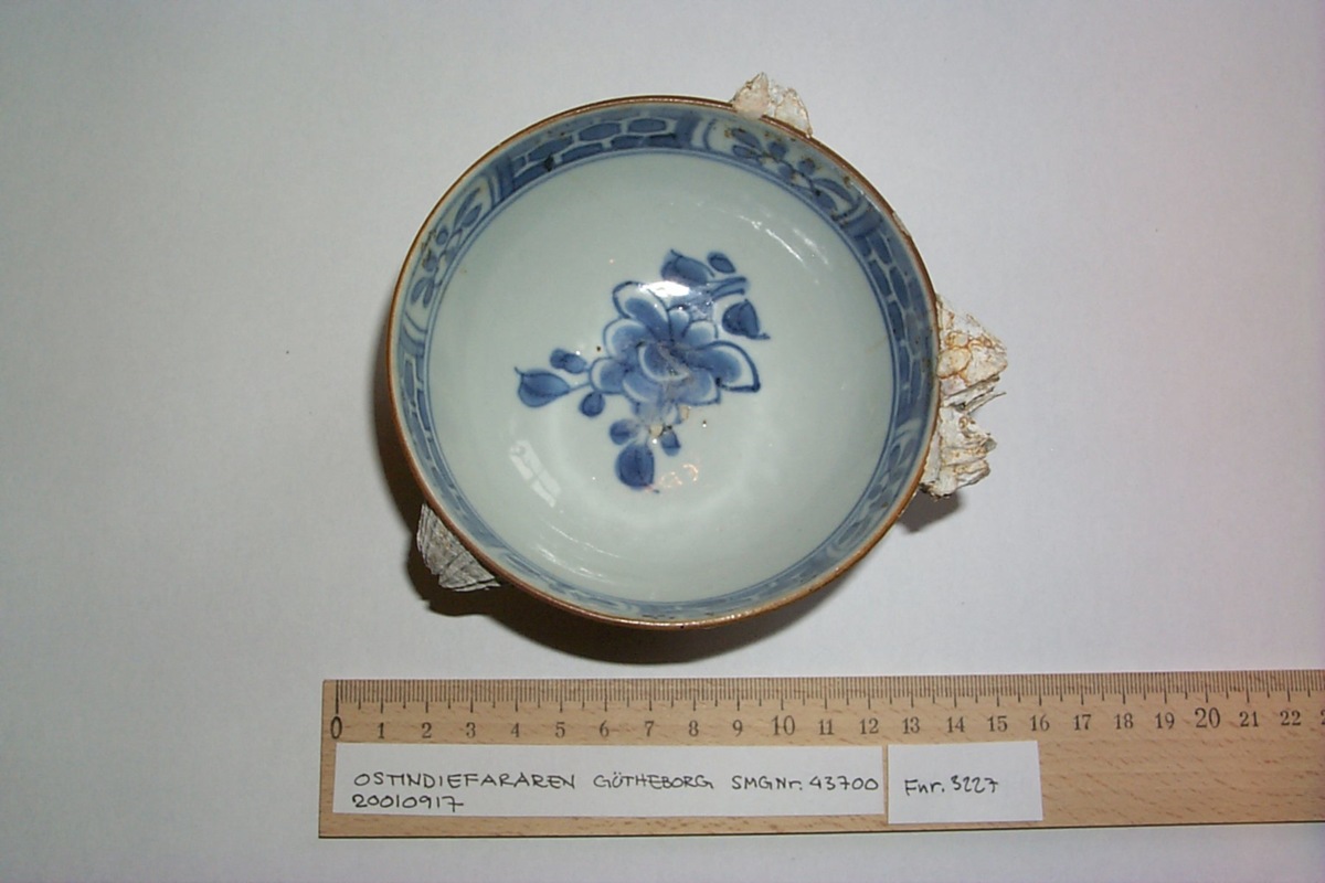 Föremålet är från vraket av ostindiefararen Götheborg, som gjorde tre resor till Kina 1739-45. Vid hemkomsten från den sista resan 12 september 1745 förliste fartyget vid grundet Hunnebådan strax utanför Nya Elfsborgs fästning. Vid flera tillfällen har material tagits upp från vraket. Föremålet kommer från de marinarkeologiska utgrävningarna på platsen 1986-1992.
