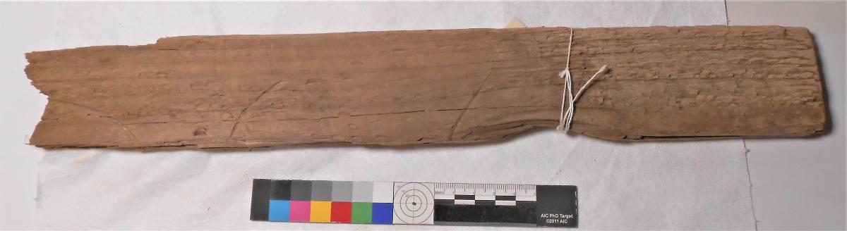 Föremålet är från vraket av ostindiefararen Götheborg, som gjorde tre resor till Kina 1739-45. Vid hemkomsten från den sista resan 12 september 1745 förliste fartyget vid grundet Hunnebådan strax utanför Nya Elfsborgs fästning. Vid flera tillfällen har material tagits upp från vraket. Föremålet kommer från de marinarkeologiska utgrävningarna på platsen 1986-1992.