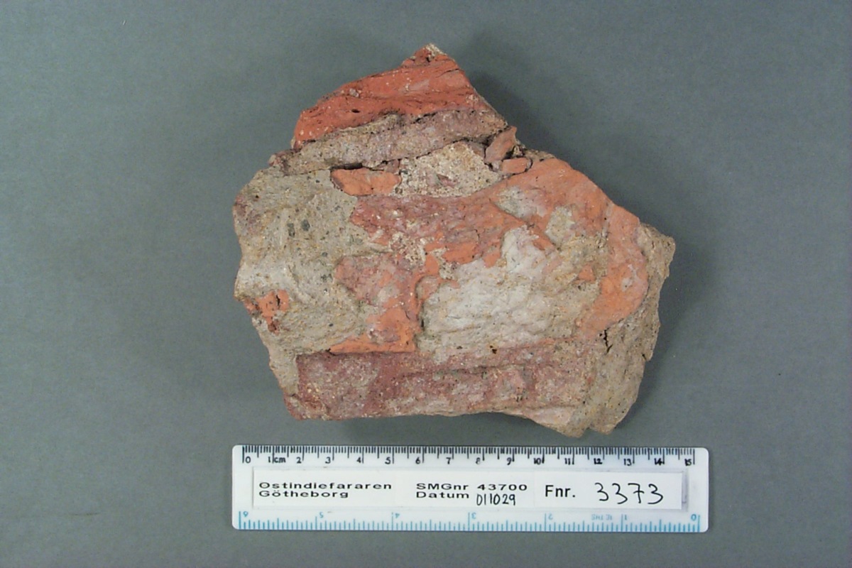 Föremålet är från vraket av ostindiefararen Götheborg, som gjorde tre resor till Kina 1739-45. Vid hemkomsten från den sista resan 12 september 1745 förliste fartyget vid grundet Hunnebådan strax utanför Nya Elfsborgs fästning. Vid flera tillfällen har material tagits upp från vraket. Föremålet kommer från de marinarkeologiska utgrävningarna på platsen 1986-1992.