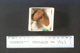 2) Tändrör till handgranat, svampformad, genomgående hål d: 7 mm. Missfärgad av järnkorrosion.