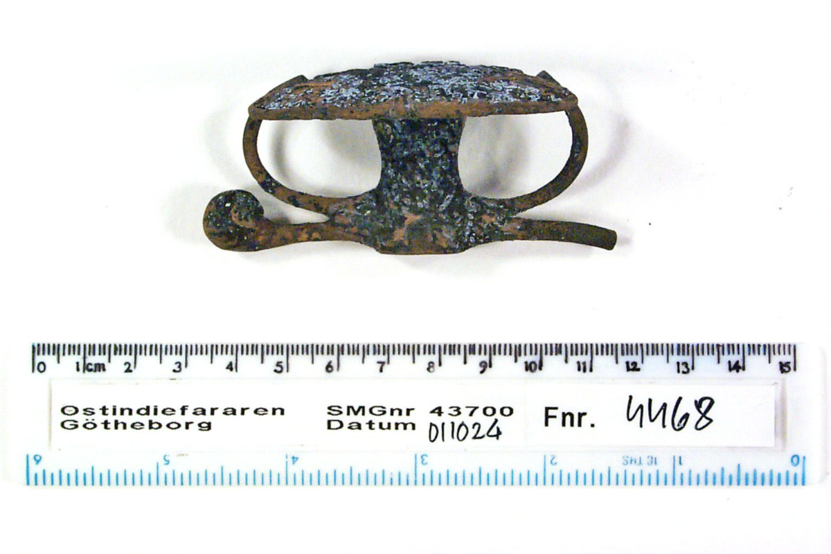 Föremålet är från vraket av ostindiefararen Götheborg, som gjorde tre resor till Kina 1739-45. Vid hemkomsten från den sista resan 12 september 1745 förliste fartyget vid grundet Hunnebådan strax utanför Nya Elfsborgs fästning. Vid flera tillfällen har material tagits upp från vraket. Föremålet kommer från de marinarkeologiska utgrävningarna på platsen 1986-1992.