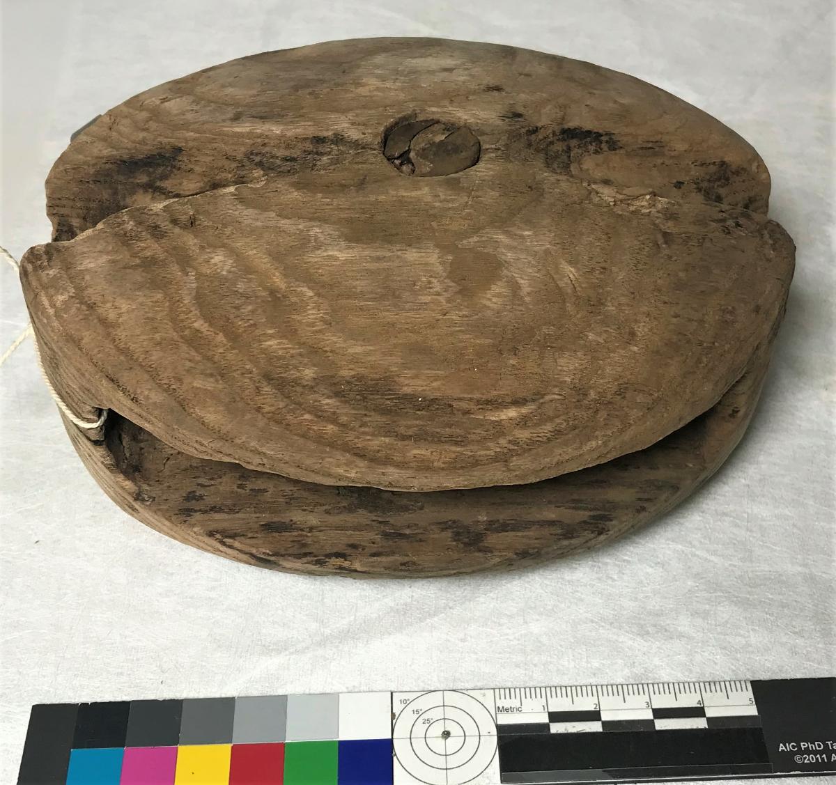 Föremålet är från vraket av ostindiefararen Götheborg, som gjorde tre resor till Kina 1739-45. Vid hemkomsten från den sista resan 12 september 1745 förliste fartyget vid grundet Hunnebådan strax utanför Nya Elfsborgs fästning. Vid flera tillfällen har material tagits upp från vraket. Föremålet kommer från de marinarkeologiska utgrävningarna på platsen 1986-1992.