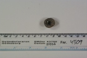 Knapp eller nit, huvud av. Ihåligt med fyrkantigt hål för fäste.