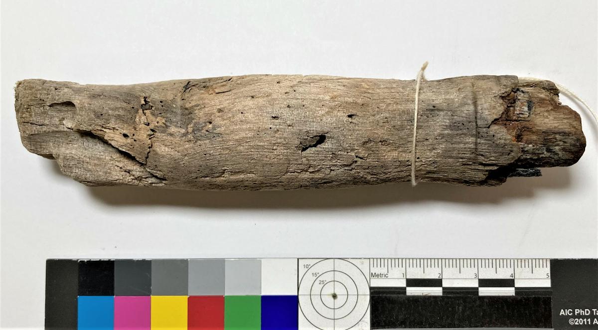 Föremålet är från vraket av ostindiefararen Götheborg, som gjorde tre resor till Kina 1739-45. Vid hemkomsten från den sista resan 12 september 1745 förliste fartyget vid grundet Hunnebådan strax utanför Nya Elfsborgs fästning. Vid flera tillfällen har material tagits upp från vraket. Föremålet kommer från de marinarkeologiska utgrävningarna på platsen 1986-1992.