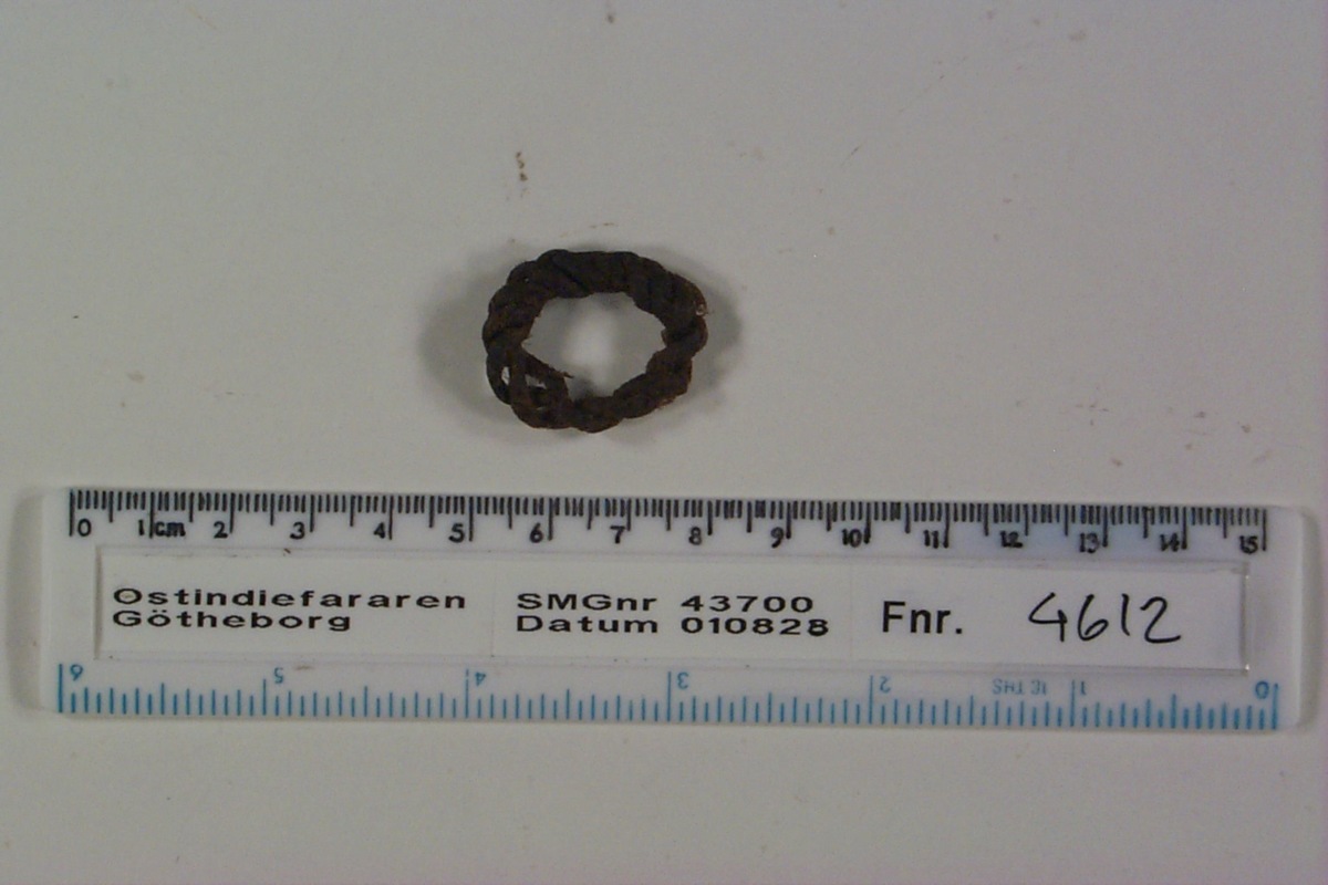 Föremålet är från vraket av ostindiefararen Götheborg, som gjorde tre resor till Kina 1739-45. Vid hemkomsten från den sista resan 12 september 1745 förliste fartyget vid grundet Hunnebådan strax utanför Nya Elfsborgs fästning. Vid flera tillfällen har material tagits upp från vraket. Föremålet kommer från de marinarkeologiska utgrävningarna på platsen 1986-1992.