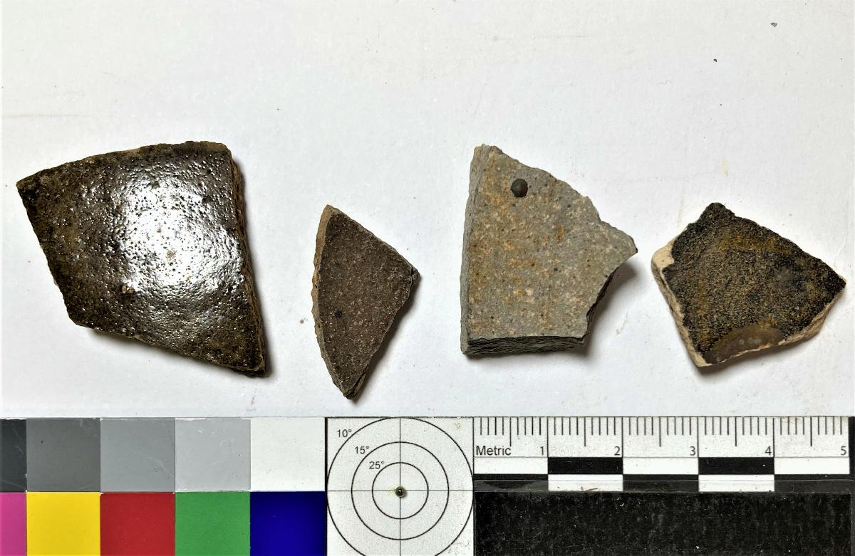 Mått enl. ovan. Beige gods, mörkbrun glasyr på utsidan.