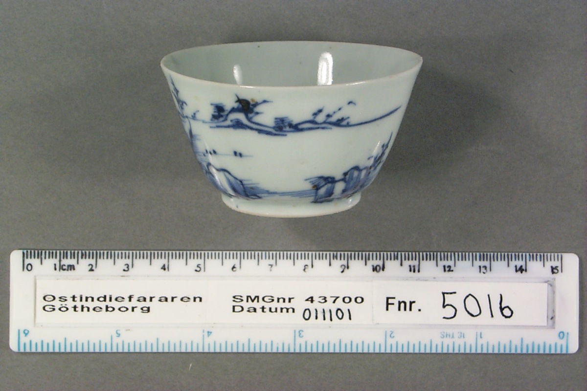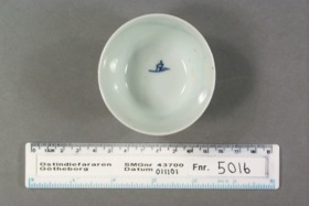 Kategori A; underglasyrblå dekor. Mycket tunt och fint gods.