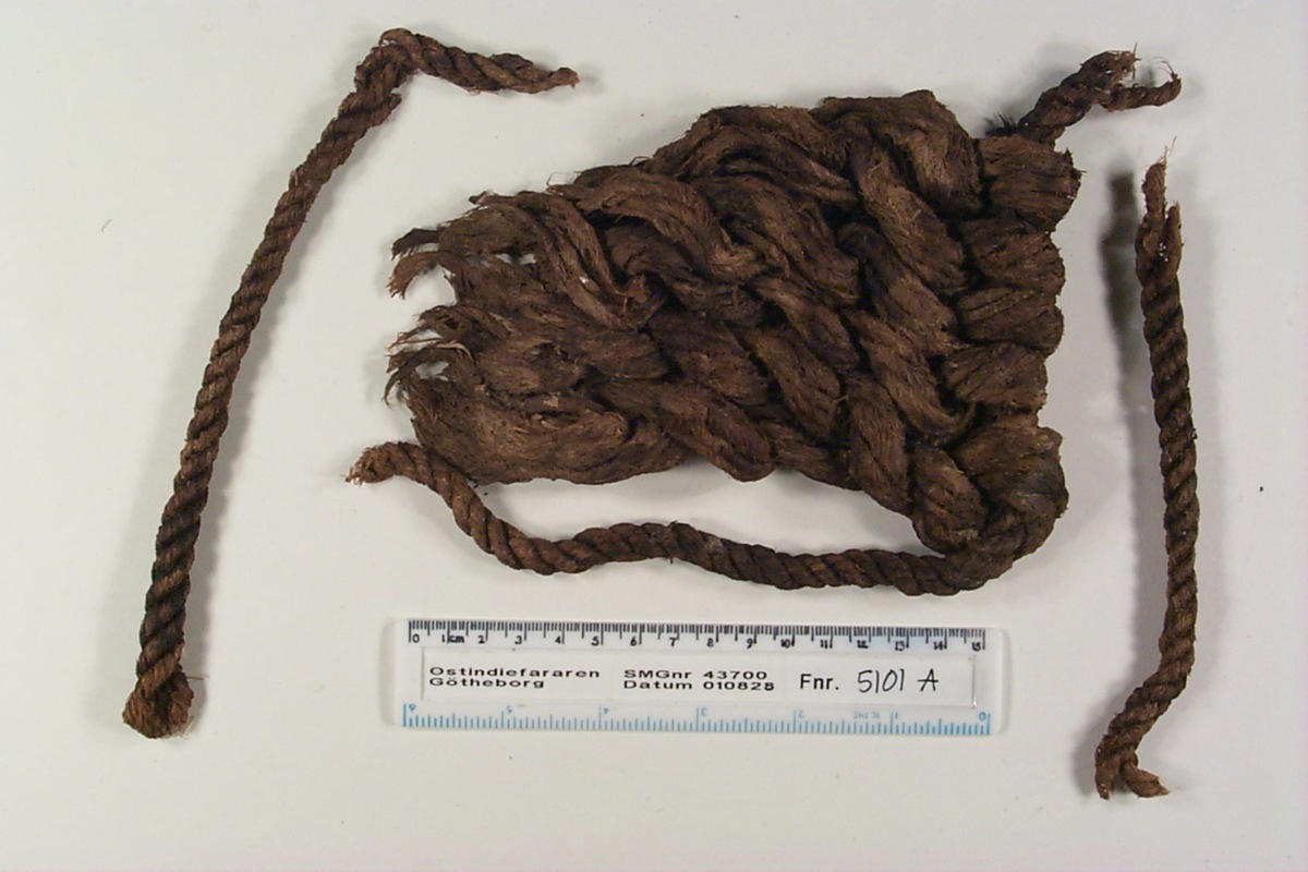 Föremålet är från vraket av ostindiefararen Götheborg, som gjorde tre resor till Kina 1739-45. Vid hemkomsten från den sista resan 12 september 1745 förliste fartyget vid grundet Hunnebådan strax utanför Nya Elfsborgs fästning. Vid flera tillfällen har material tagits upp från vraket. Föremålet kommer från de marinarkeologiska utgrävningarna på platsen 1986-1992.