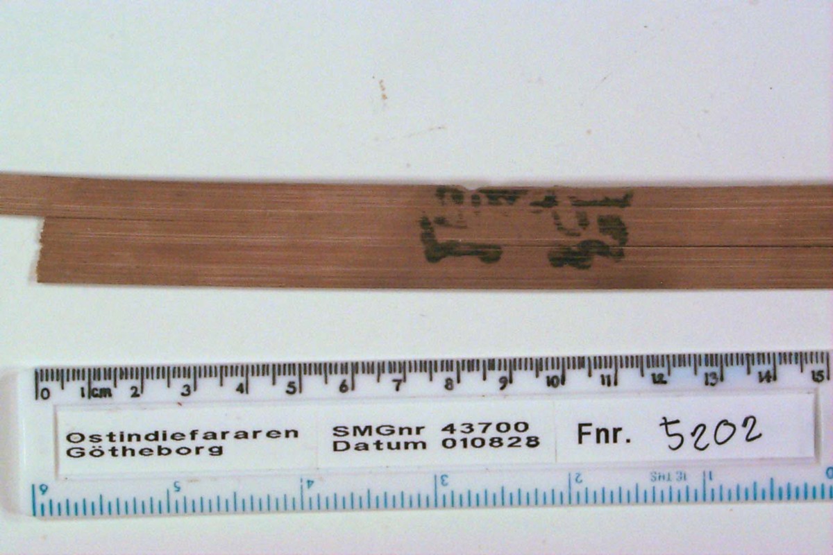 Bambusticka, avbruten i båda ändar, kinesiskt tecken målat med tusch på ena sidan.