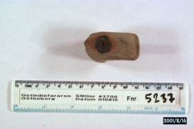 Föremålet är från vraket av ostindiefararen Götheborg, som gjorde tre resor till Kina 1739-45. Vid hemkomsten från den sista resan 12 september 1745 förliste fartyget vid grundet Hunnebådan strax utanför Nya Elfsborgs fästning. Vid flera tillfällen har material tagits upp från vraket. Föremålet kommer från de marinarkeologiska utgrävningarna på platsen 1986-1992.
