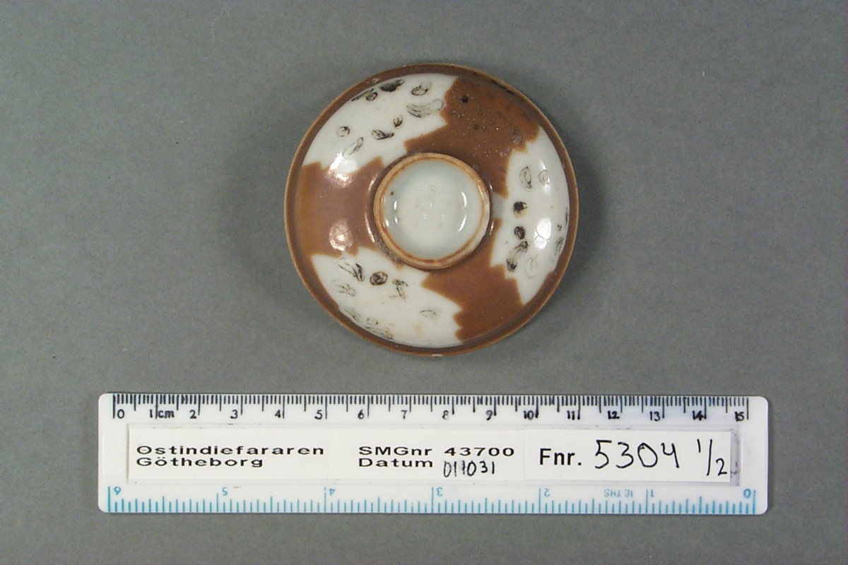 Föremålet är från vraket av ostindiefararen Götheborg, som gjorde tre resor till Kina 1739-45. Vid hemkomsten från den sista resan 12 september 1745 förliste fartyget vid grundet Hunnebådan strax utanför Nya Elfsborgs fästning. Vid flera tillfällen har material tagits upp från vraket. Föremålet kommer från de marinarkeologiska utgrävningarna på platsen 1986-1992.