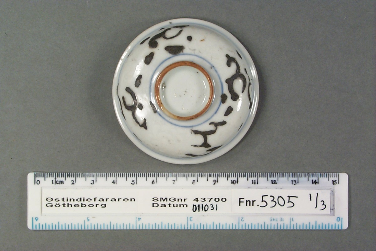 Föremålet är från vraket av ostindiefararen Götheborg, som gjorde tre resor till Kina 1739-45. Vid hemkomsten från den sista resan 12 september 1745 förliste fartyget vid grundet Hunnebådan strax utanför Nya Elfsborgs fästning. Vid flera tillfällen har material tagits upp från vraket. Föremålet kommer från de marinarkeologiska utgrävningarna på platsen 1986-1992.