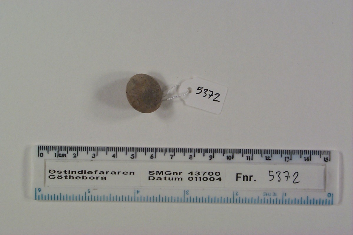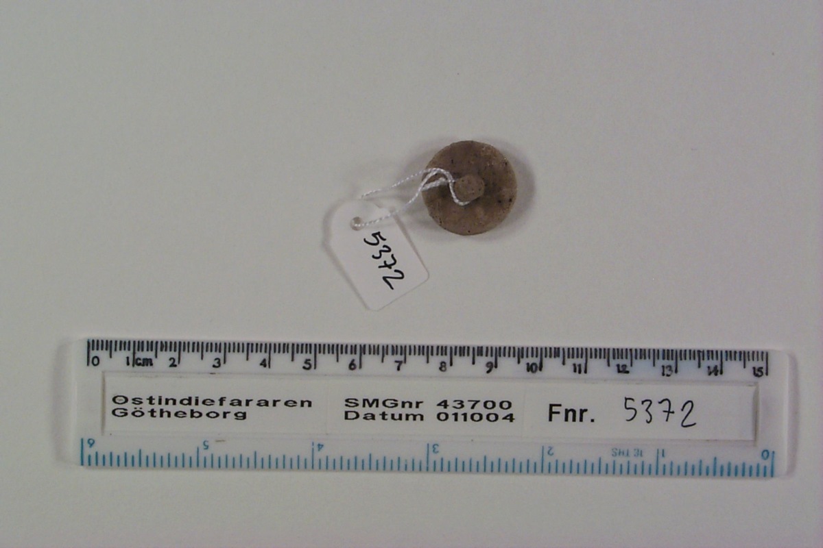 Föremålet är från vraket av ostindiefararen Götheborg, som gjorde tre resor till Kina 1739-45. Vid hemkomsten från den sista resan 12 september 1745 förliste fartyget vid grundet Hunnebådan strax utanför Nya Elfsborgs fästning. Vid flera tillfällen har material tagits upp från vraket. Föremålet kommer från de marinarkeologiska utgrävningarna på platsen 1986-1992.