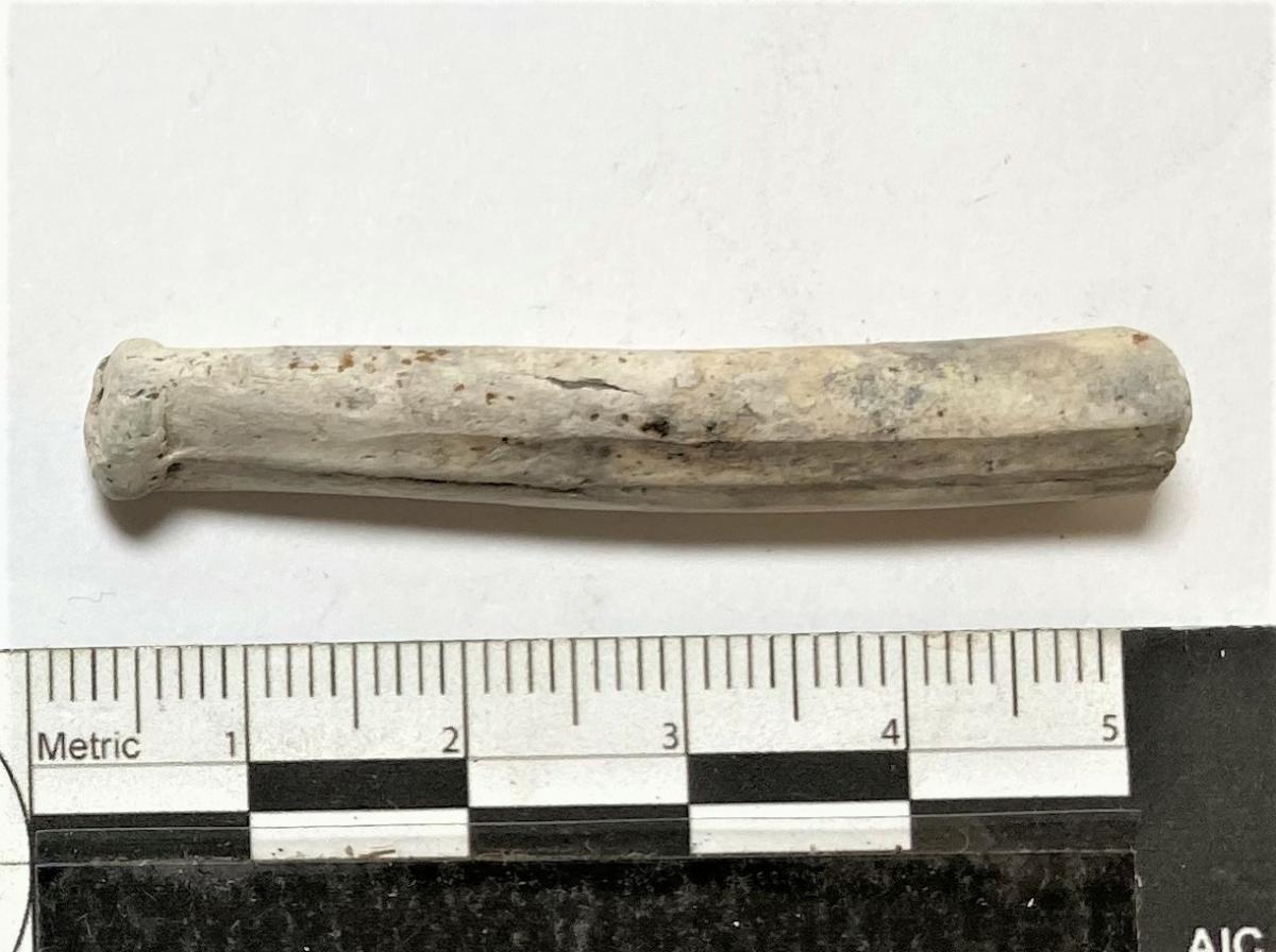 Skaft, avbrutet, med munstycke. Text: A.GULB...