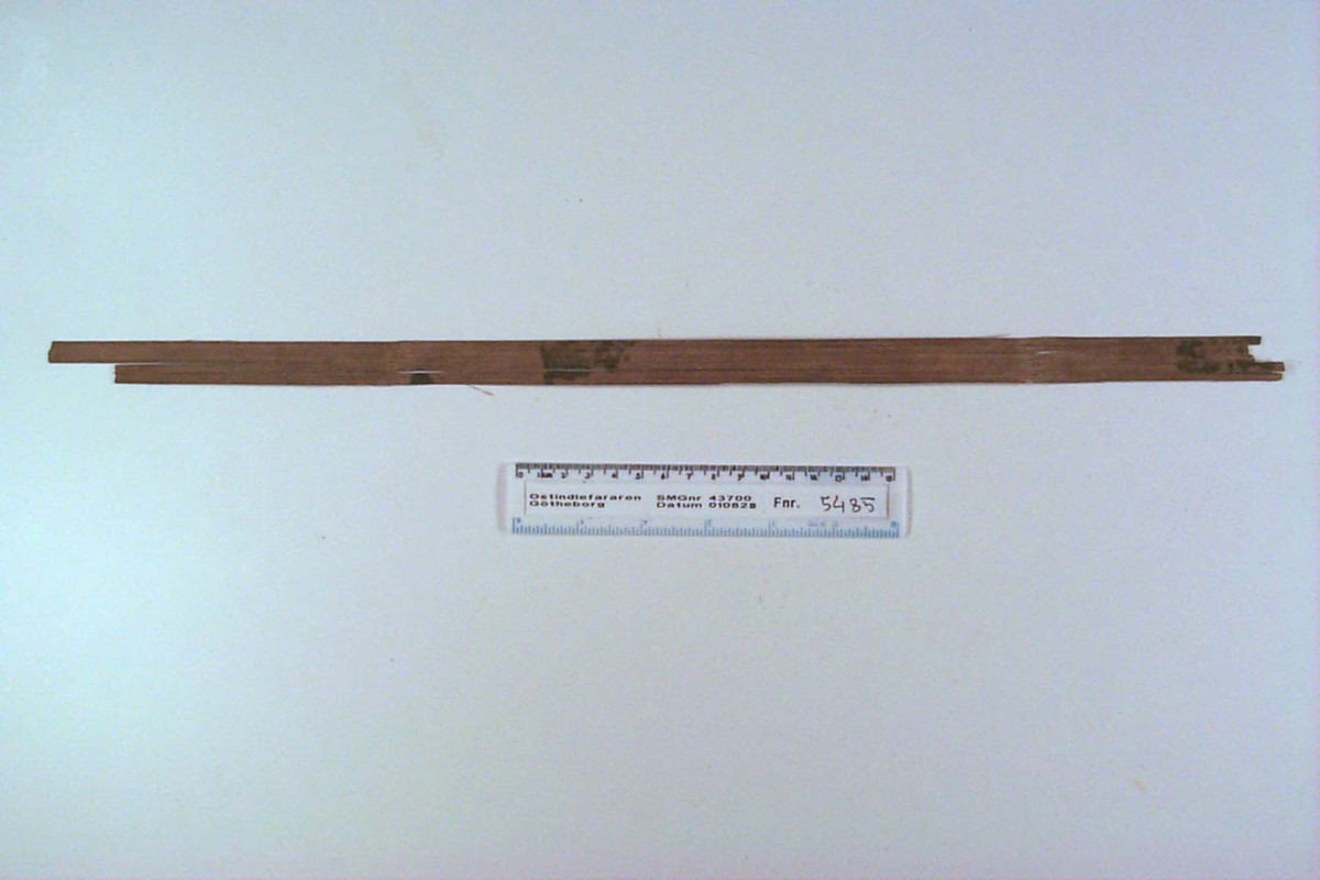 Föremålet är från vraket av ostindiefararen Götheborg, som gjorde tre resor till Kina 1739-45. Vid hemkomsten från den sista resan 12 september 1745 förliste fartyget vid grundet Hunnebådan strax utanför Nya Elfsborgs fästning. Vid flera tillfällen har material tagits upp från vraket. Föremålet kommer från de marinarkeologiska utgrävningarna på platsen 1986-1992.