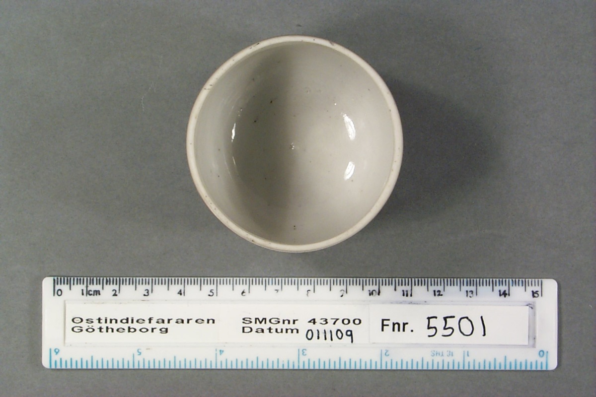 Föremålet är från vraket av ostindiefararen Götheborg, som gjorde tre resor till Kina 1739-45. Vid hemkomsten från den sista resan 12 september 1745 förliste fartyget vid grundet Hunnebådan strax utanför Nya Elfsborgs fästning. Vid flera tillfällen har material tagits upp från vraket. Föremålet kommer från de marinarkeologiska utgrävningarna på platsen 1986-1992.