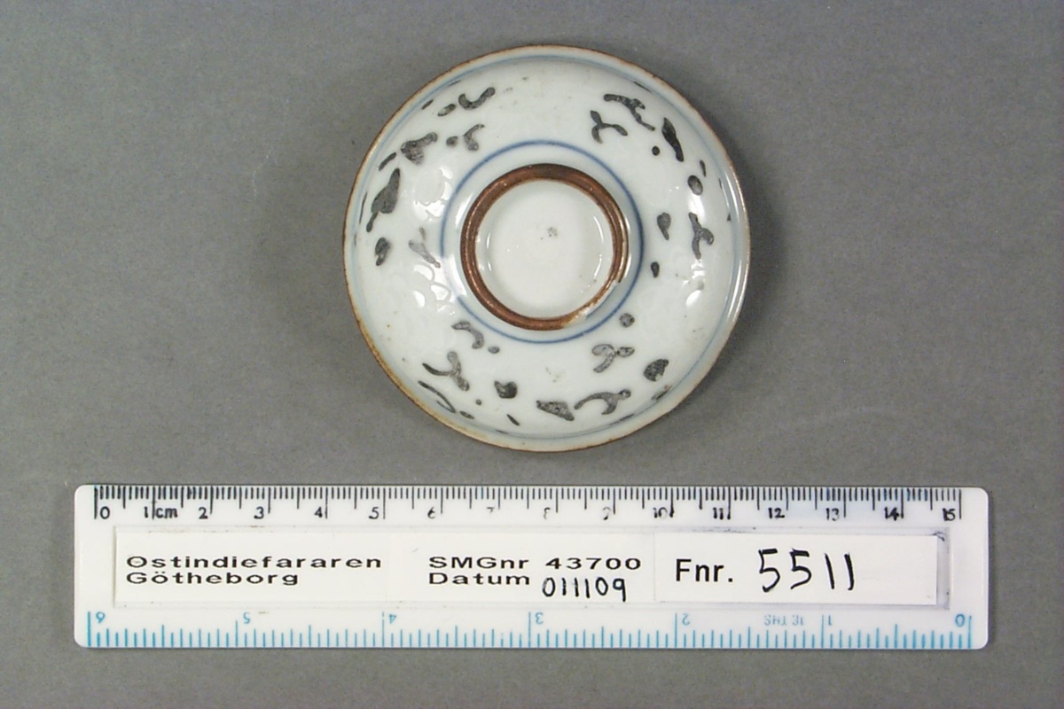 Föremålet är från vraket av ostindiefararen Götheborg, som gjorde tre resor till Kina 1739-45. Vid hemkomsten från den sista resan 12 september 1745 förliste fartyget vid grundet Hunnebådan strax utanför Nya Elfsborgs fästning. Vid flera tillfällen har material tagits upp från vraket. Föremålet kommer från de marinarkeologiska utgrävningarna på platsen 1986-1992.