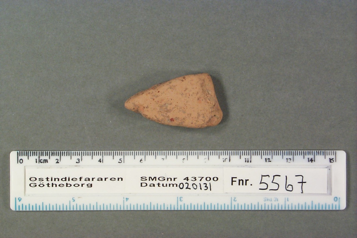 Föremålet är från vraket av ostindiefararen Götheborg, som gjorde tre resor till Kina 1739-45. Vid hemkomsten från den sista resan 12 september 1745 förliste fartyget vid grundet Hunnebådan strax utanför Nya Elfsborgs fästning. Vid flera tillfällen har material tagits upp från vraket. Föremålet kommer från de marinarkeologiska utgrävningarna på platsen 1986-1992.