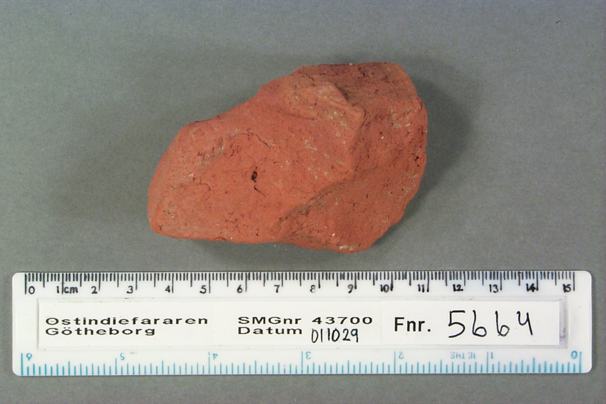Föremålet är från vraket av ostindiefararen Götheborg, som gjorde tre resor till Kina 1739-45. Vid hemkomsten från den sista resan 12 september 1745 förliste fartyget vid grundet Hunnebådan strax utanför Nya Elfsborgs fästning. Vid flera tillfällen har material tagits upp från vraket. Föremålet kommer från de marinarkeologiska utgrävningarna på platsen 1986-1992.