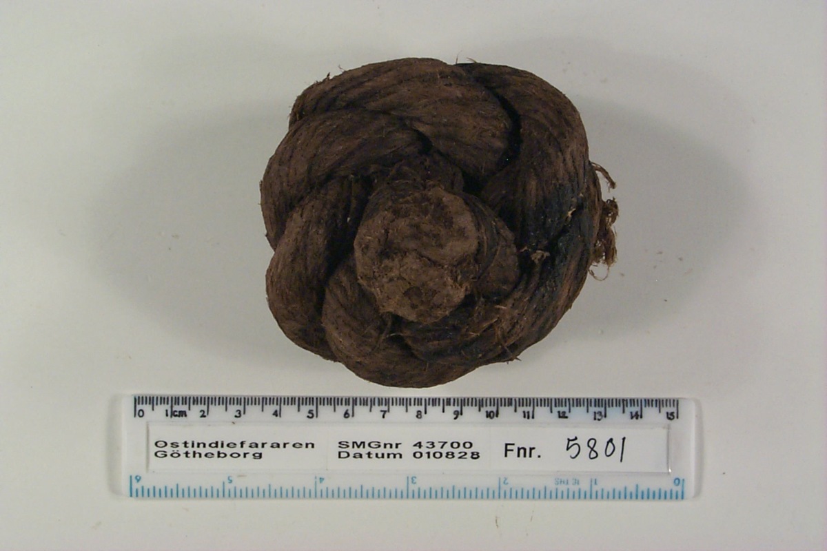 Föremålet är från vraket av ostindiefararen Götheborg, som gjorde tre resor till Kina 1739-45. Vid hemkomsten från den sista resan 12 september 1745 förliste fartyget vid grundet Hunnebådan strax utanför Nya Elfsborgs fästning. Vid flera tillfällen har material tagits upp från vraket. Föremålet kommer från de marinarkeologiska utgrävningarna på platsen 1986-1992.