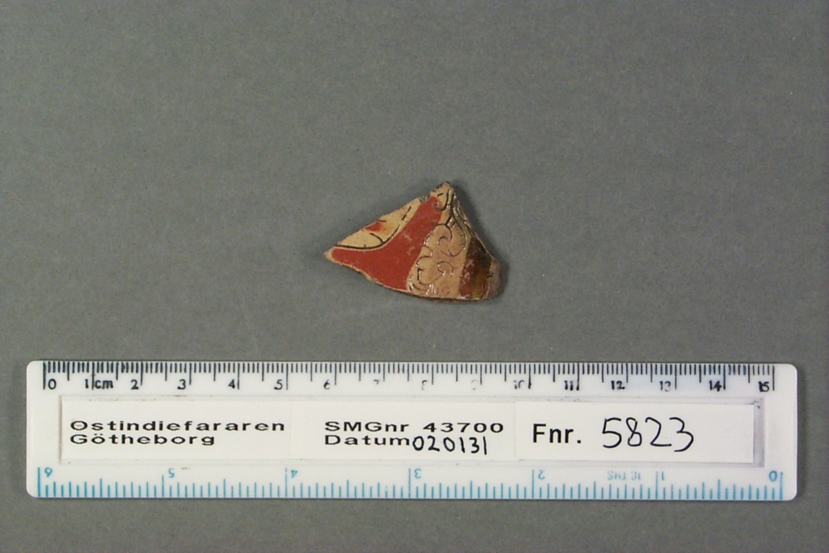 Föremålet är från vraket av ostindiefararen Götheborg, som gjorde tre resor till Kina 1739-45. Vid hemkomsten från den sista resan 12 september 1745 förliste fartyget vid grundet Hunnebådan strax utanför Nya Elfsborgs fästning. Vid flera tillfällen har material tagits upp från vraket. Föremålet kommer från de marinarkeologiska utgrävningarna på platsen 1986-1992.