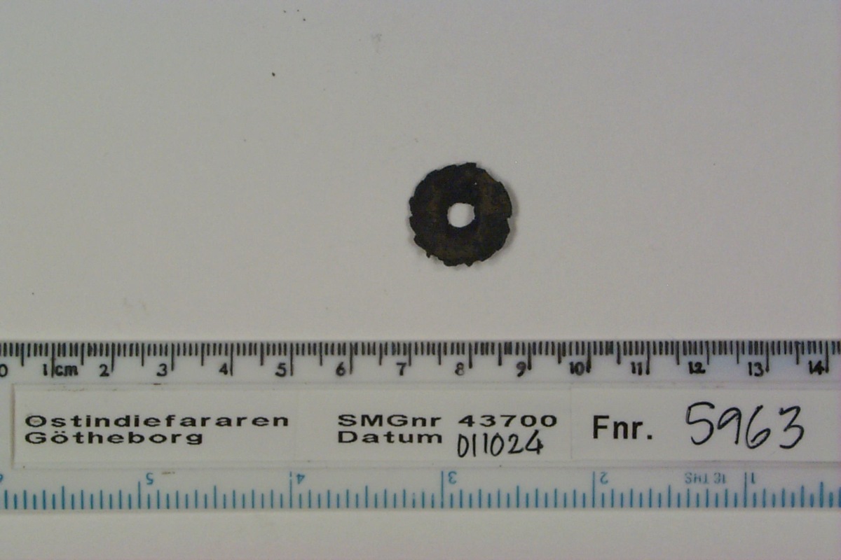 Föremålet är från vraket av ostindiefararen Götheborg, som gjorde tre resor till Kina 1739-45. Vid hemkomsten från den sista resan 12 september 1745 förliste fartyget vid grundet Hunnebådan strax utanför Nya Elfsborgs fästning. Vid flera tillfällen har material tagits upp från vraket. Föremålet kommer från de marinarkeologiska utgrävningarna på platsen 1986-1992.