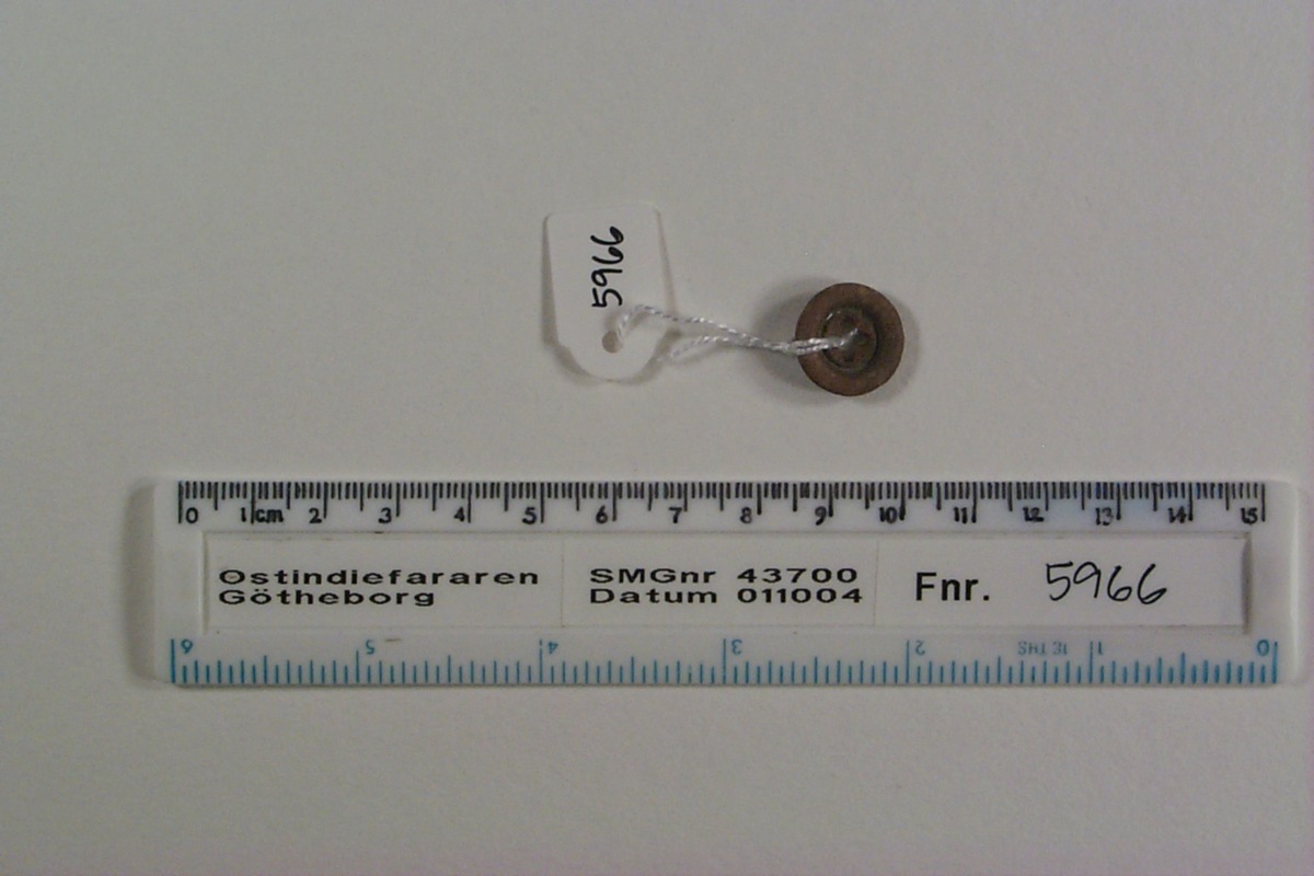 Föremålet är från vraket av ostindiefararen Götheborg, som gjorde tre resor till Kina 1739-45. Vid hemkomsten från den sista resan 12 september 1745 förliste fartyget vid grundet Hunnebådan strax utanför Nya Elfsborgs fästning. Vid flera tillfällen har material tagits upp från vraket. Föremålet kommer från de marinarkeologiska utgrävningarna på platsen 1986-1992.