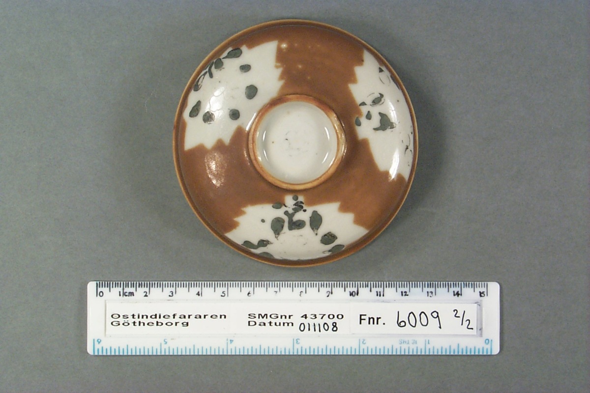 Föremålet är från vraket av ostindiefararen Götheborg, som gjorde tre resor till Kina 1739-45. Vid hemkomsten från den sista resan 12 september 1745 förliste fartyget vid grundet Hunnebådan strax utanför Nya Elfsborgs fästning. Vid flera tillfällen har material tagits upp från vraket. Föremålet kommer från de marinarkeologiska utgrävningarna på platsen 1986-1992.