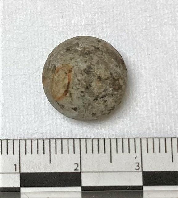 Kula, måttet skiljer sig från övriga kulor, den är också lätt i förhållande till volymen (=järn?)